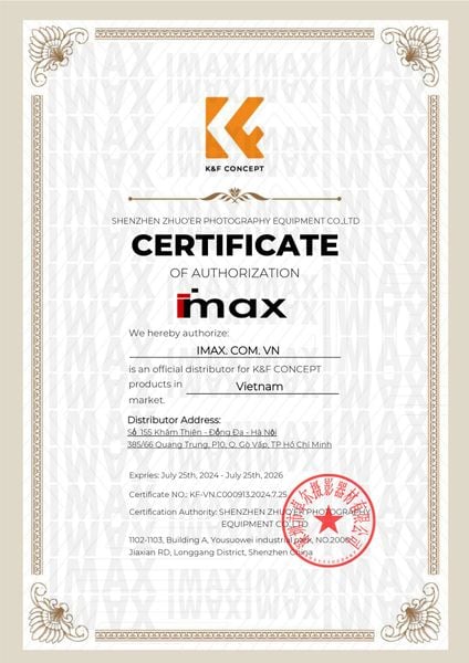 Imax được K&F Concept chứng nhận là Đại lý chính hãng tại Việt Nam, chúng tôi hân hạnh được mang tới cho khách hàng những sản phẩm được K&F Concept chau chuốt từ khâu nghiên cứu sản phẩm tới khâu sản xuất, kiểm duyệt và sản phẩm chất lượng trên tay người tiêu dùng