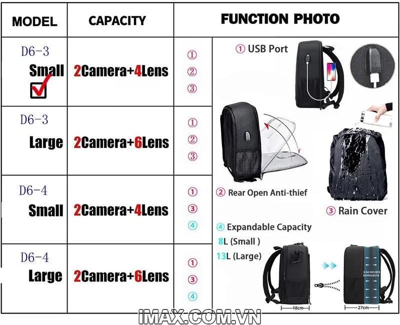 - Thiết kế mở lớn có thể nhanh chóng lấy máy ảnh ra