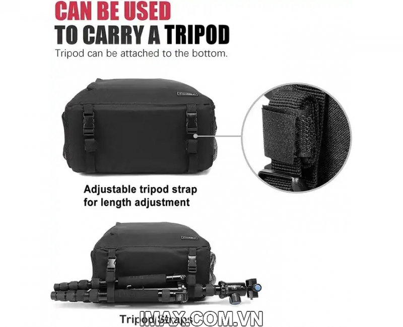 -Có dây đeo chân máy chuyên nghiệp bên hông