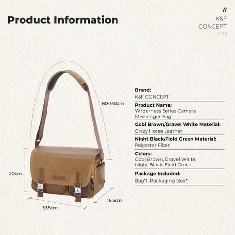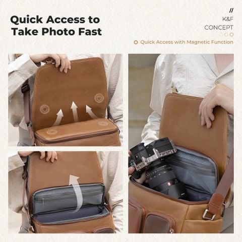 Túi K&F Concept KF13.142 là một phụ kiện thời trang và tiện dụng dành cho các nhiếp ảnh gia. Thể tích 10 lít cho phép bạn thoải mái đựng 1 máy ảnh và 3 ống kính, đồng thời còn có giá đỡ chân máy. Ngăn ngoài có nam châm giúp bạn lấy đồ nhanh chóng.