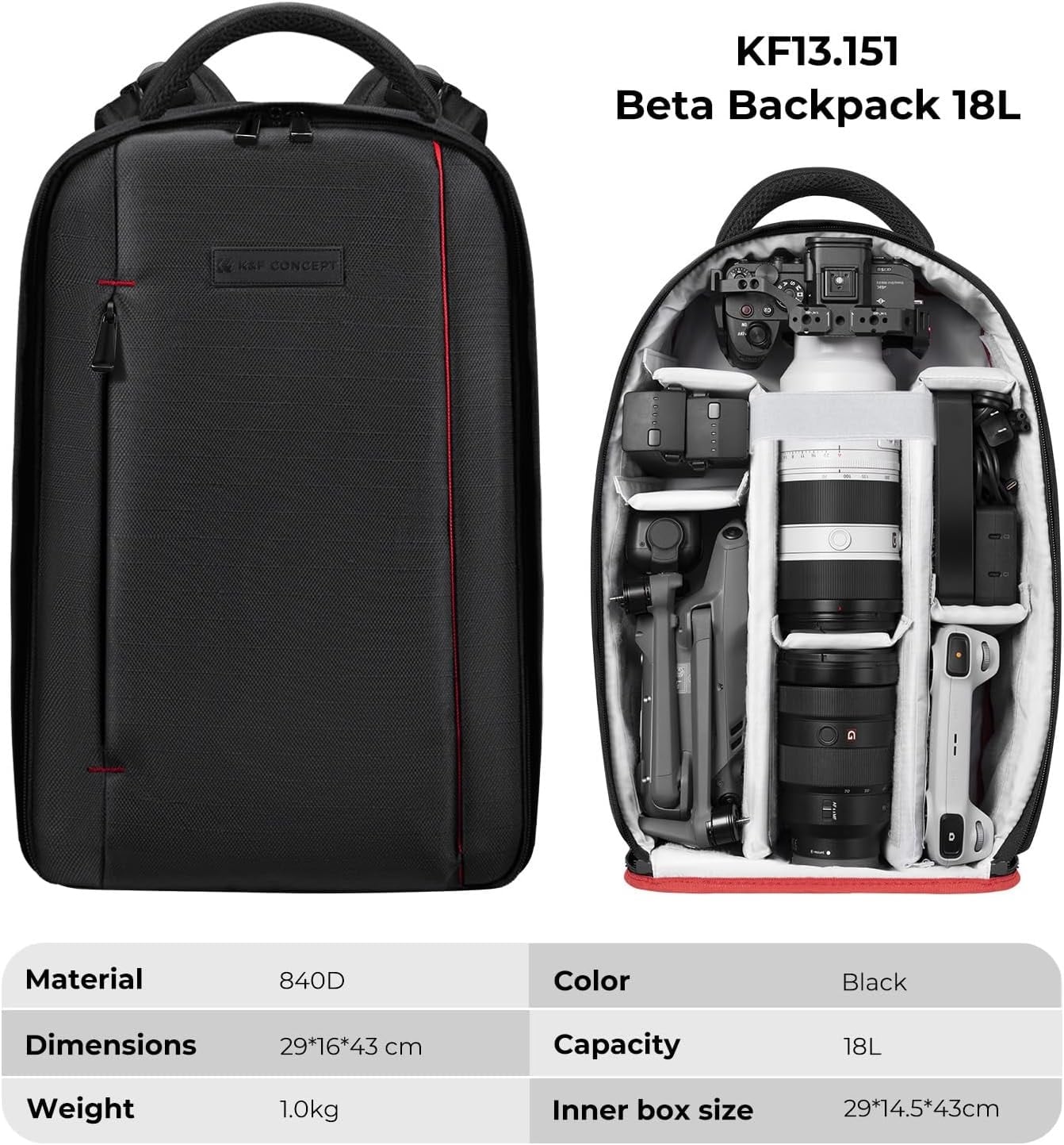 ✨Không gian rộng rãi: Chứa được 1-2 máy ảnh DSLR/SLR, 4-5 ống kính, đèn flash, laptop 13.3 inch, chân máy ảnh du lịch gọn nhẹ và nhiều phụ kiện khác.