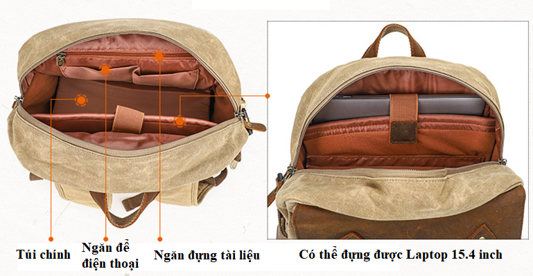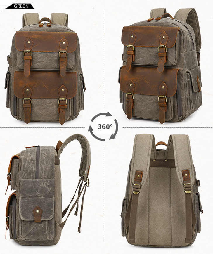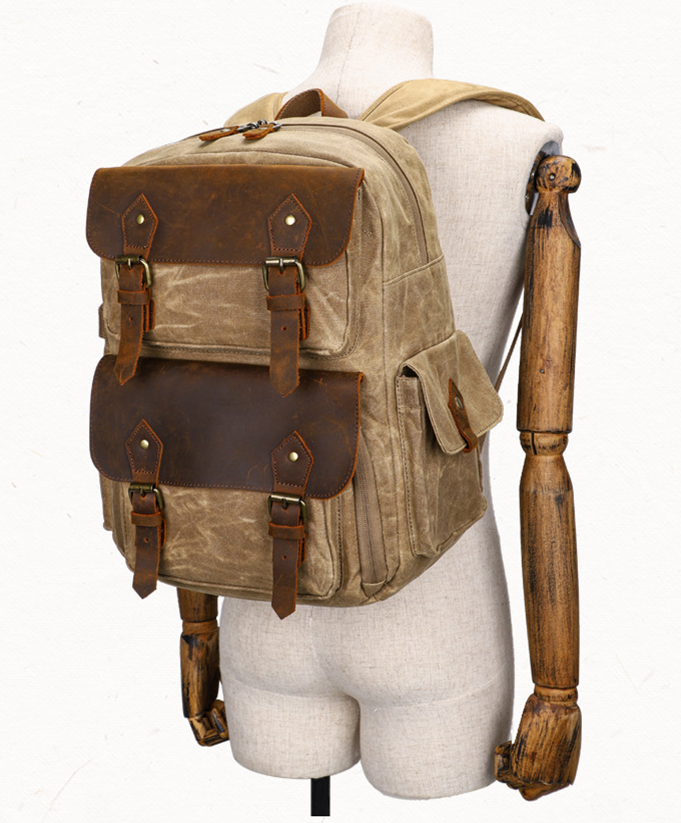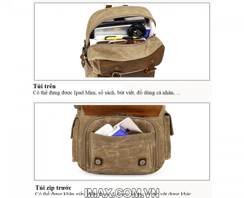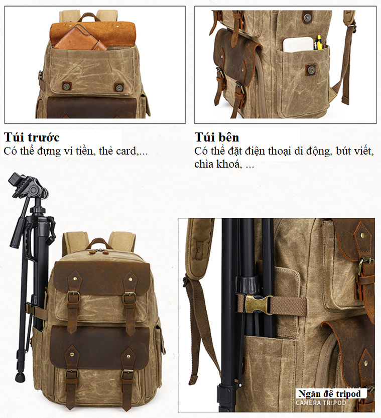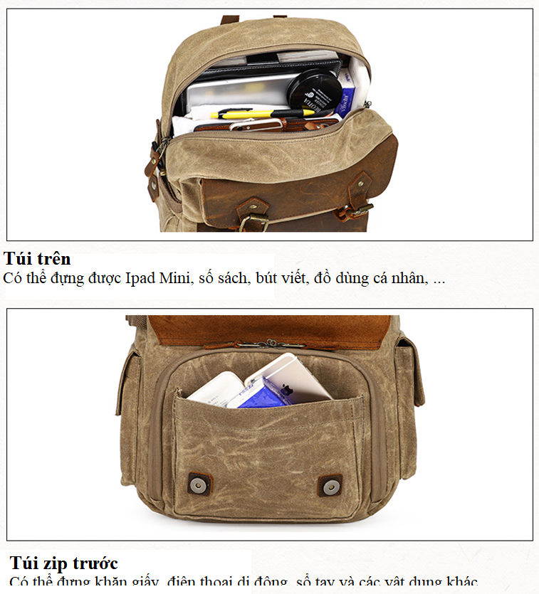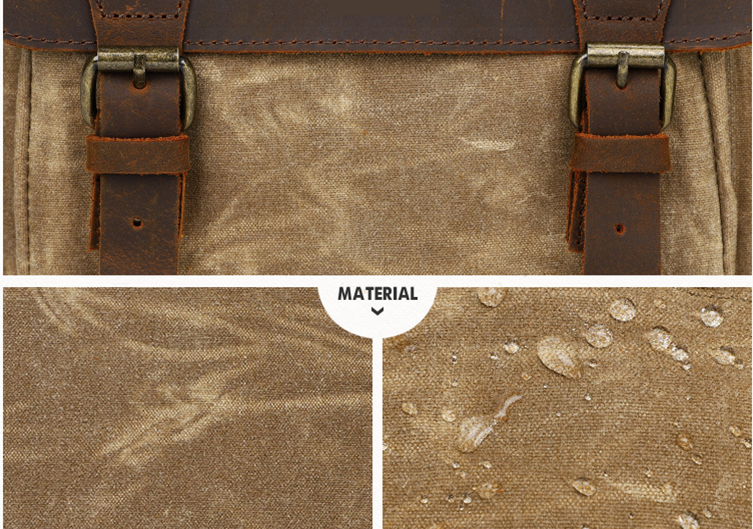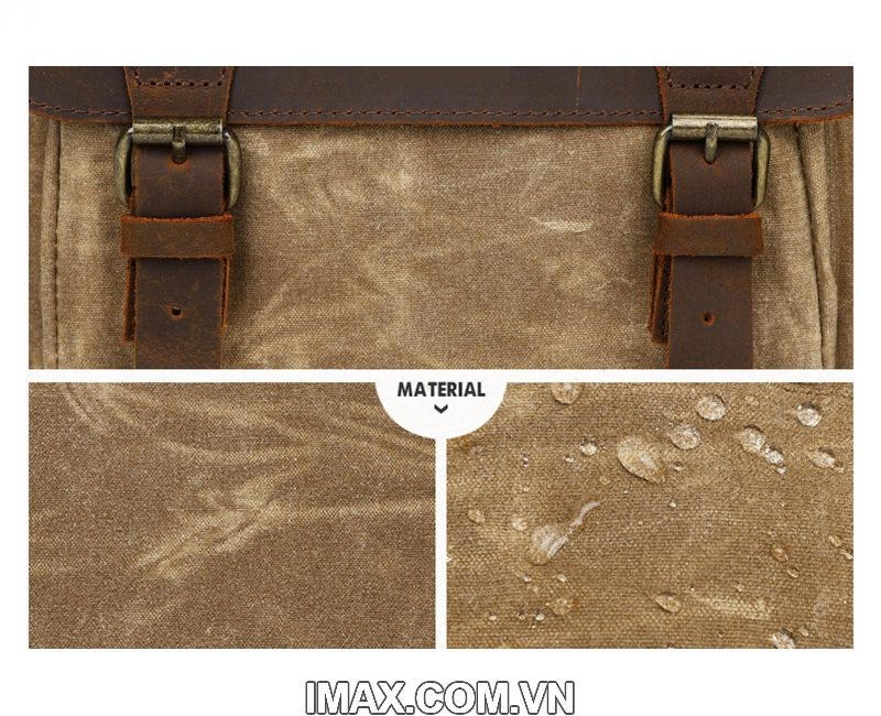 Được làm từ vải Kaki với lớp phủ SBS bên ngoài giúp chống thấm nước kết hợp với da bền dai làm nổi bật từng chi tiết nhỏ nhất của túi.