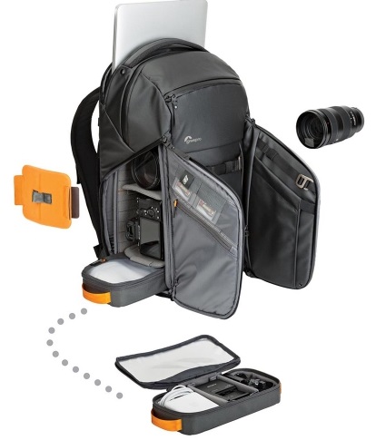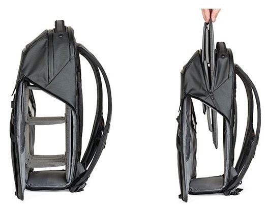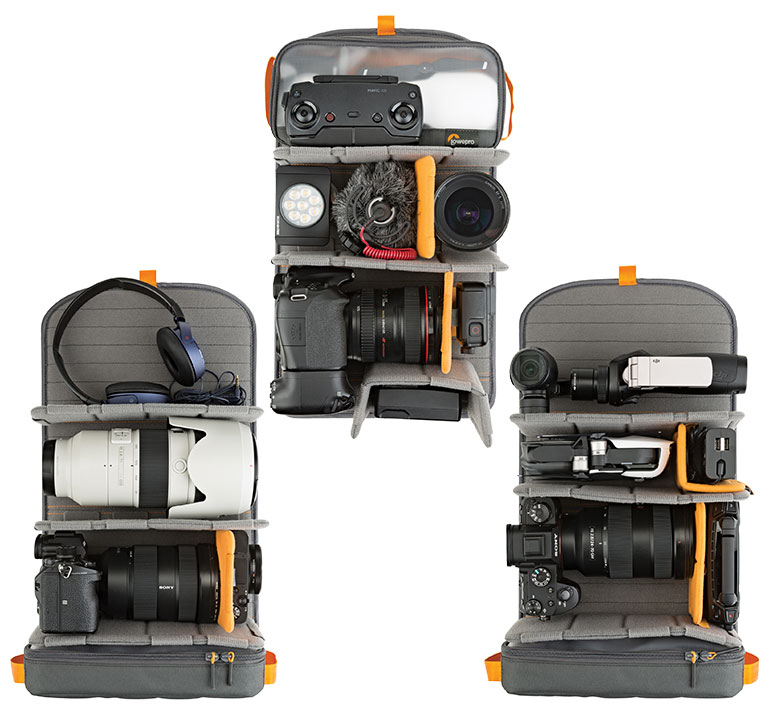 Tùy chỉnh các ngăn lưu trữ của bạn với bộ chia mang tính cách mạng của Lowepro mở ra thành một giá 3 tầng và dễ dàng thay đổi.