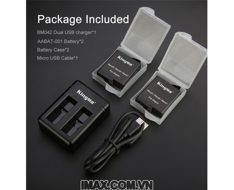 Bộ 1 pin 1 sạc đôi Kingma cho Gopro 5/6/7 -T501