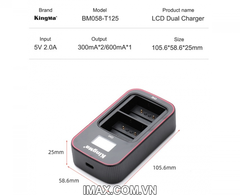 - Sạc được cùng lúc 2 pin riêng biệt