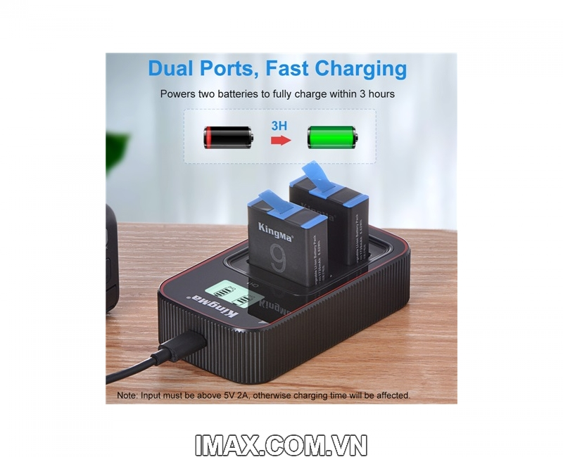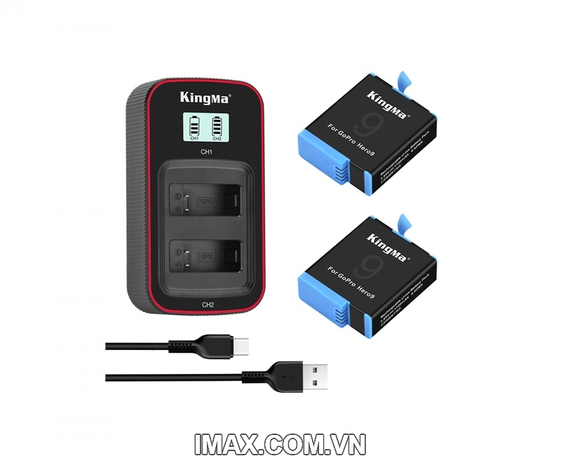 Bộ 2 pin 1 sạc đôi Ver 3 Kingma for GoPro Hero 9 Black, Hero 10 Black
