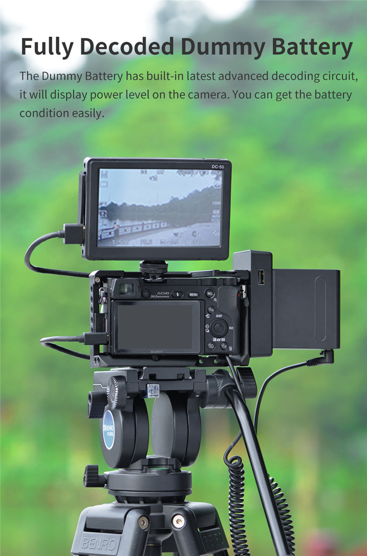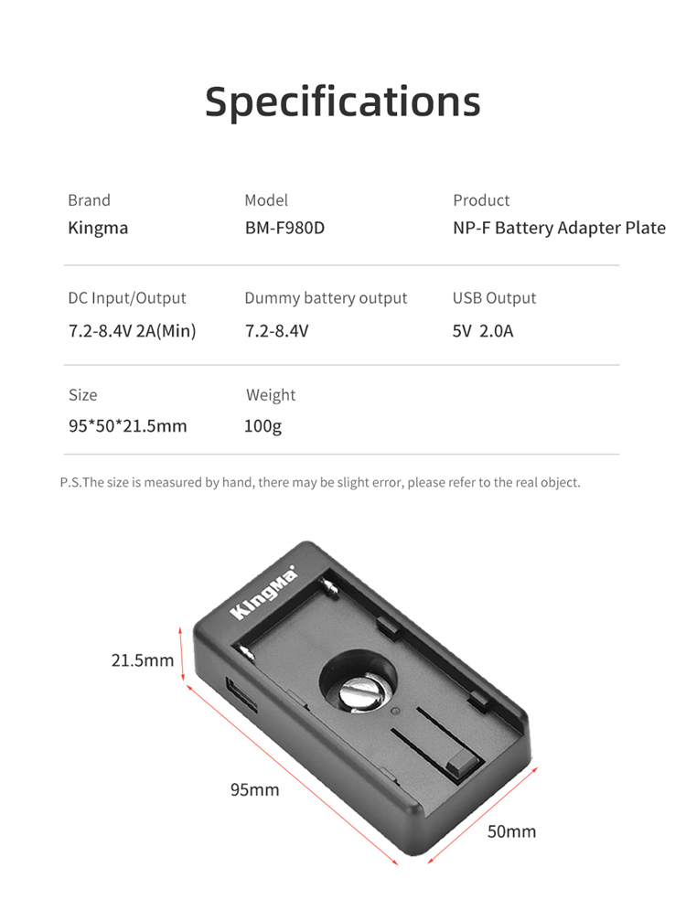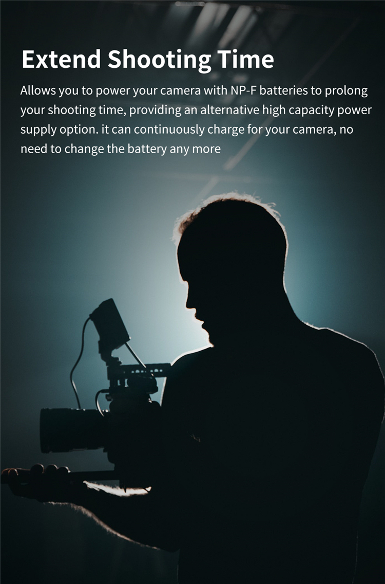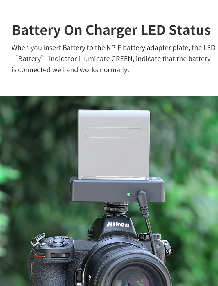 - Có 2 đầu ra, cả DC và USB cho tất cả các kích thước của pin Sony NP-F, chẳng hạn như Sony NP-F980, NP-F970, F960, F950, v.v.