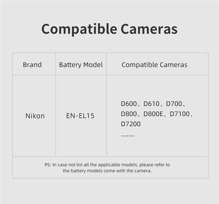 - Thay thế cho: Máy ảnhNikon D7100 D800 Z6 Z7