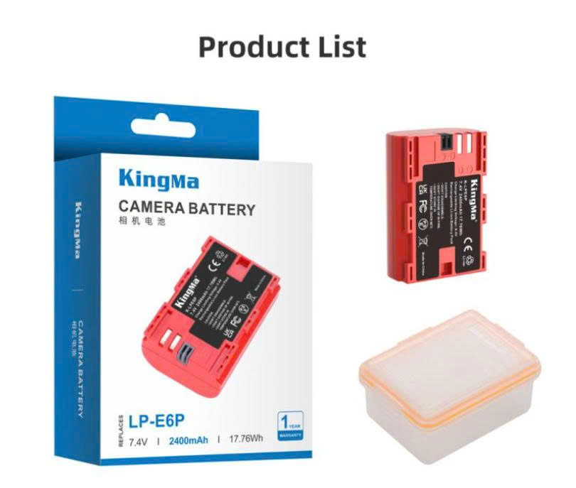 - Pin dung lượng cao 2400mAh, dung lượng cao nhất của Kingma for LP-E6P