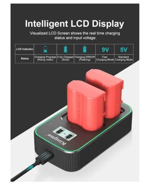 Dung lượng: Pin Kingma EN-EL15C có dung lượng 2600mAh , cao hơn so với dung lượng 2280mAh của pin Nikon EN-EL15C gốc, có khả năng cho thời gian chụp lâu hơn.