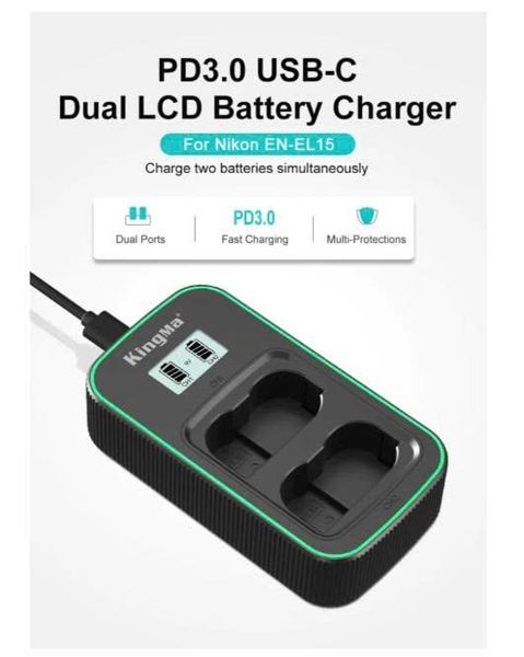 Kingma cung cấp pin EN-EL15C cho máy ảnh Nikon, đây là loại pin thay thế dung lượng cao, đã được giải mã hoàn toàn, tương đương với pin chính hãng của Nikon. Loại pin này nhìn chung được người dùng đánh giá cao về hiệu năng và giá trị.