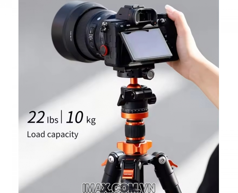 - Cấu tạo từ hợp kim nhôm chắc chắn, giúp tripod chịu sức nặng lên đến 10kg