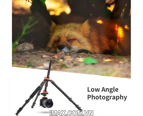 Các chân trụ của K&F Concept K254A3 có thể được đảo ngược để chụp ở mức cực thấp và đảo ngược hoàn toàn và gập lại chỉ cònchiều dài 46cm giúp người dùng dễ dàng di chuyển. Người dùng có thể tháo rời một chân trụ và biến chân máy thành monopod tiện lợi.