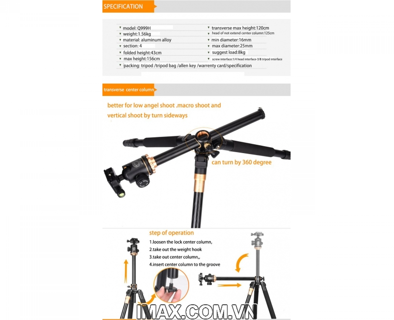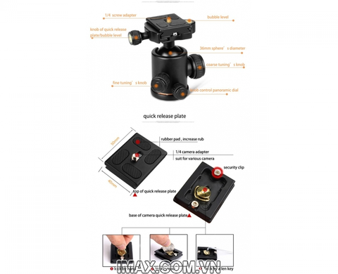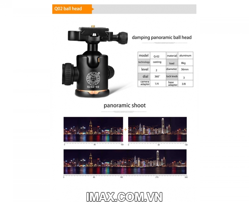 -Sử dụng đầu bi Panorama QZ03, hỗ trợ chụp lia máy theo chiều ngang.