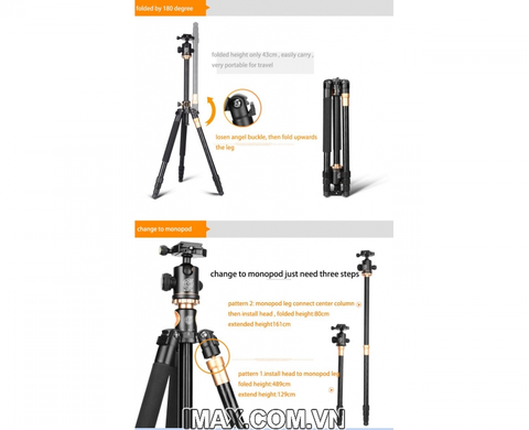 -Có thể tháo rời làm monopod, Chiều cao Monopod 1m64