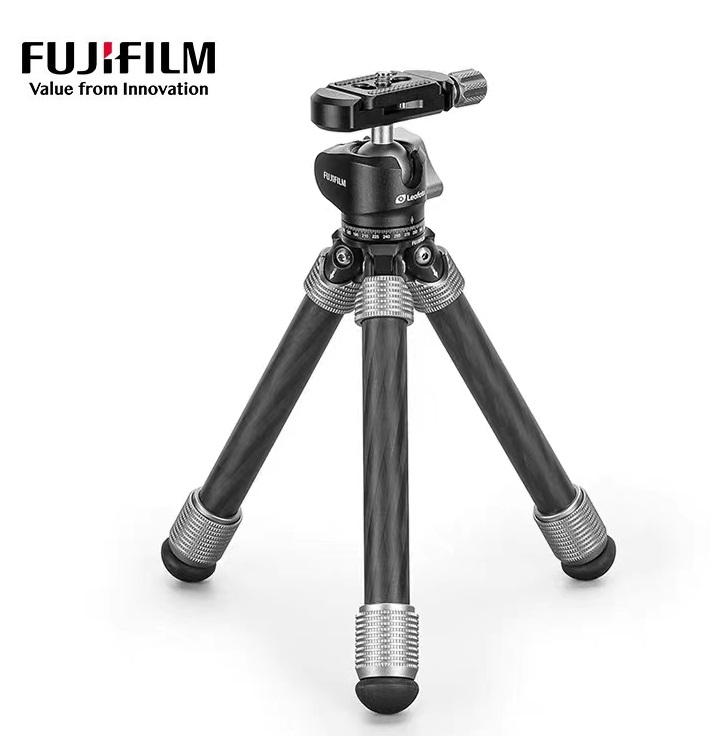 - Cả ballhead và chân đế tripod đều được khắc logo của Fuji và Leofoto