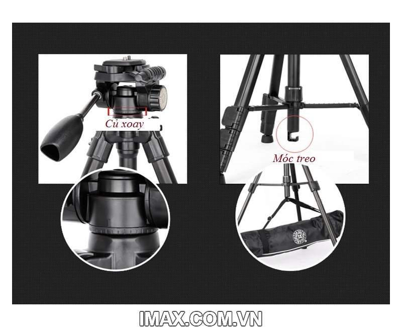 - Chân cột 4 phần với ổ khóa phát hành nhanh chóng cung cấp một lập trường thuận tiện hơn đáp ứng chiều cao của bạn mong muốn khi chụp