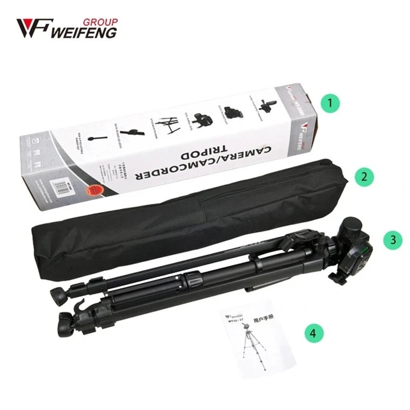– Bộ sản phẩm gồm : 01 x Tripod Weifeng WT 3520, 01 x Túi đựng vải dù