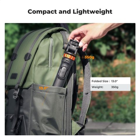 * Gậy tự sướng du lịch nhỏ gọn Tripod: Dài 33cm khi gấp lại, nặng chỉ 350g. Sản phẩm đi kèm túi đựng, hoàn hảo cho những chuyến du lịch ba lô và cắm trại, mang đến cho bạn sự thoải mái tuyệt vời và khả năng chống bụi.