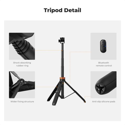 * Chân máy ảnh tự sướng đa năng 3 trong 1: Được thiết kế dành cho những người đam mê nhiếp ảnh, chân máy này tương thích với máy ảnh, đèn, điện thoại và các sản phẩm nhiếp ảnh khác. Đồng thời, hệ thống khóa đã được gia cố, tay cầm được làm dày hơn và chân đế cao su được mở rộng để cải thiện độ ổn định và sự thoải mái.
