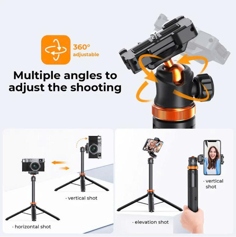 - Tương thích rộng rãi: Nhờ ngàm 1/4 inch tiêu chuẩn và adapter GoPro đi kèm, gậy tương thích với hầu hết điện thoại thông minh, máy ảnh mirrorless và camera hành động.