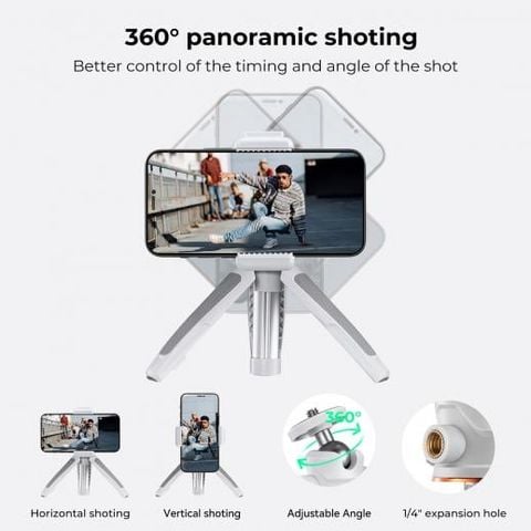 - Thiết kế 2 trong 1: Dễ dàng chuyển đổi giữa gậy tự sướng cầm tay và chân máy để bàn, phù hợp cho việc quay vlog, chụp ảnh nhóm và các cuộc gọi video rảnh tay.