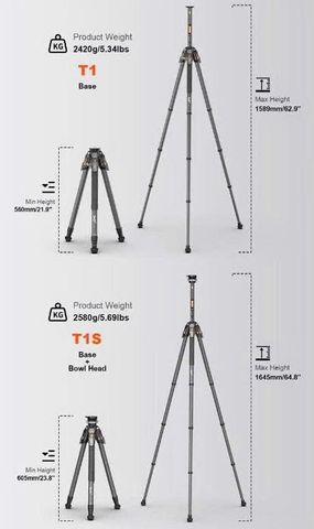 Chân máy sợi carbon COMAN T1SV5 , thao tác nhanh ( chân máy T1S và đầu fluid V5 )