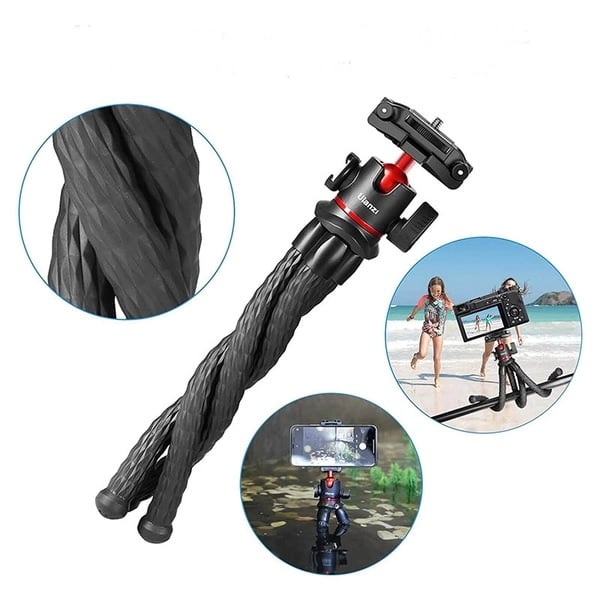Ulanzi MT33 là mẫu flexible tripod hay còn gọi tripod chân bạch tuộc với thiết kế lõi bằng hợp kim gang nên cho phép uốn cong dễ dàng. Điểm thú vị và độc đáo của Ulanzi MT-33 là tích hợp sẵn ngàm kẹp điện thoại và ngàm Hotshoe bên hông cho phép gắn nhiều phụ kiện rời như: Đèn trợ sáng, micro định hướng hoặc cài áo đều được. Uanzi MT33 là mẫu tripod upgrade mới nhất năm 2023 được nhiều Vloger chọn lựa như phụ kiện quay chụp thiết yếu.
