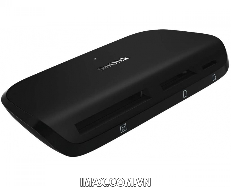 Đầu đọc / ghi đa thẻ SanDisk ImageMate PRO hoạt động với thẻ SD và thẻ nhớ microSD cũng như thẻ Compact Flash. Nó cung cấp tốc độ truyền lên tới 312MB / giây cho SD và micro SD và lên tới 160 MB / giây cho thẻ Compact Flash, và nó có giao diện USB 3.0 có thể di chuyển nội dung nhanh hơn gấp 10 lần so với giao diện USB 2.0.