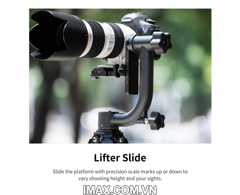 - Đế xoay và cánh tay thẳng đứng của đầu gimbal có thể xoay 360 độ để đáp ứng nhu cầu chụp ảnh từ các góc độ khác nhau.