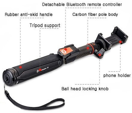 - Gậy Selfie được làm bằng Carbon siêu nhẹ