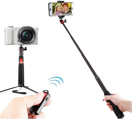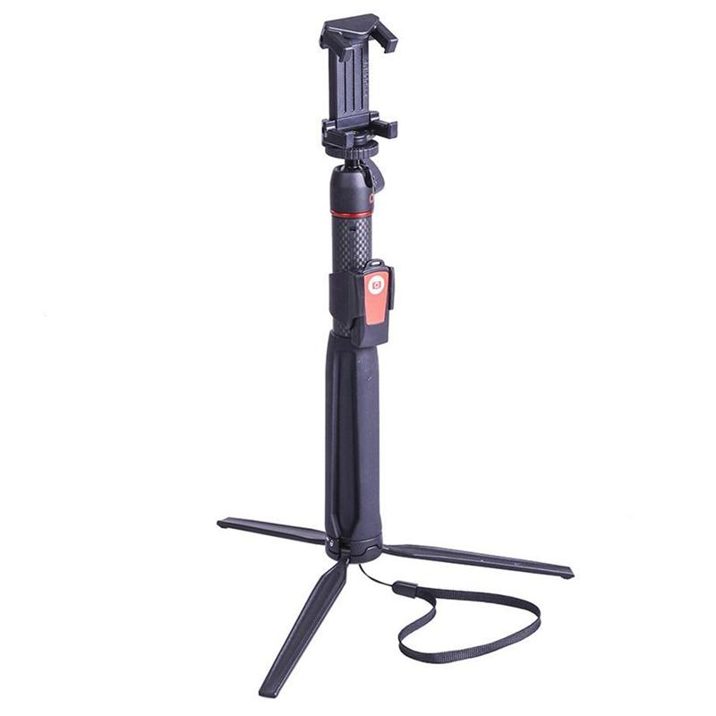Ngoài gắn điện thoại, thì với bộ tay cầm chụp hình đa năng có thể gắn GoPro, máy ảnh nhỏ. Với thiết kế nhỏ gọn trọng lượng chỉ 200g, chiều dài thu gọn còn 24cm và kéo dài tối đa là 76cm. Đầu ball gắn máy có thể tùy chỉnh xoay góc nghiêng máy 90 độ. Có thể chỉnh máy điện thoại nằm ngang hoặc đứng dọc tùy ý.