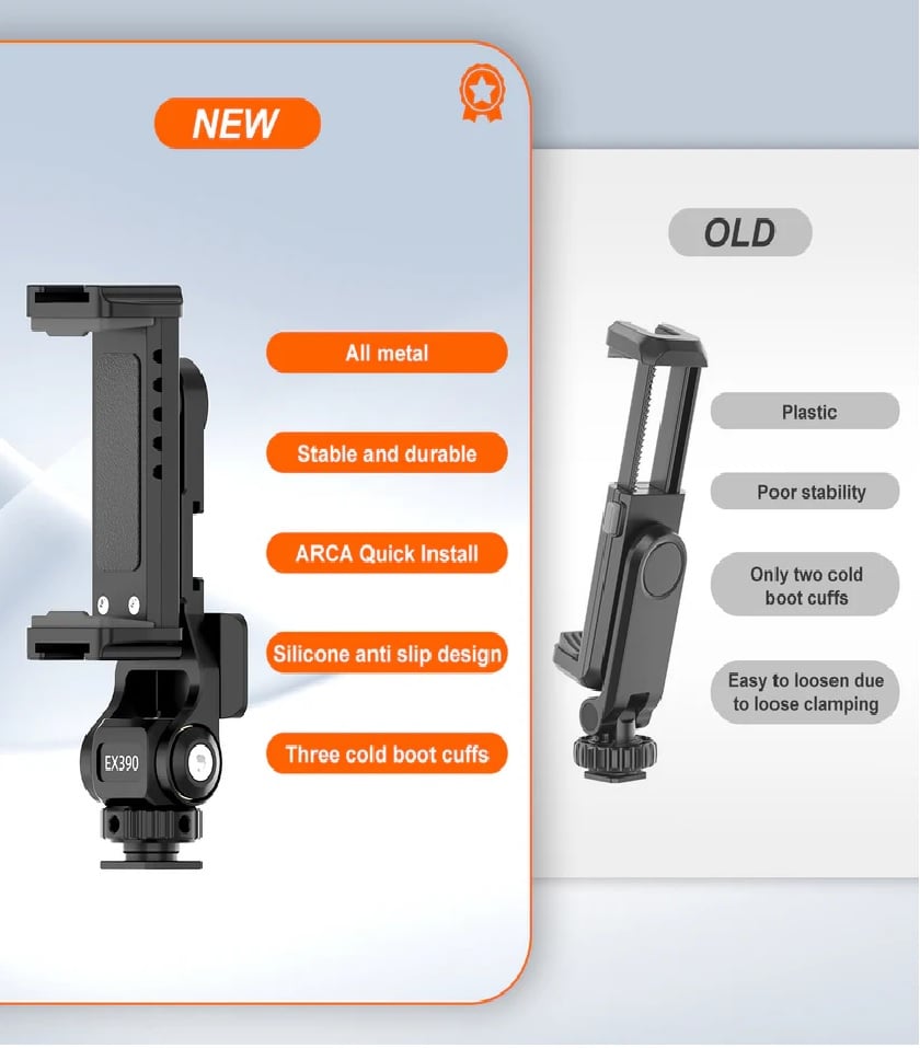 【Nâng cấp chân máy điện thoại bằng kim loại】 Chân máy điện thoại EX390 có đế lạnh ở mặt sau, giúp giải quyết vấn đề micro không dây không cố định trong khi ghi âm điện thoại. Đồng thời thêm hai lỗ vít 1/4" có thể giúp bạn mở rộng thiết bị cần thiết và đáy giá đỡ sử dụng thiết kế chống trượt bằng silicon.