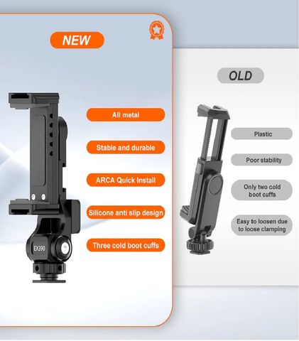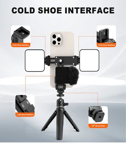 【Thiết kế 3 đế lạnh & hai lỗ mở rộng 1/4"】 Chân đế điện thoại thông minh xoay 360°, được trang bị 2 đế lạnh bên hông và 1 đế lạnh phía sau, cũng như thiết kế lỗ mở rộng 1/4 inch, cho phép bạn kết nối thêm đèn LED, micrô hoặc các thiết bị quay phim khác. Nó có thể giúp bạn quay video ổn định cho Facebook, YouTube, các nền tảng và kênh trực tiếp.