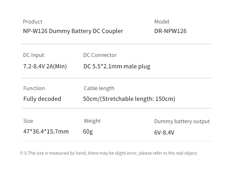 Chỉ cần trượt CP-W126 khớp nối thay NP-W126 pin và sử dụng adapter hoặc thích hợp khác nguồn điện để kết nối với nguồn điện.