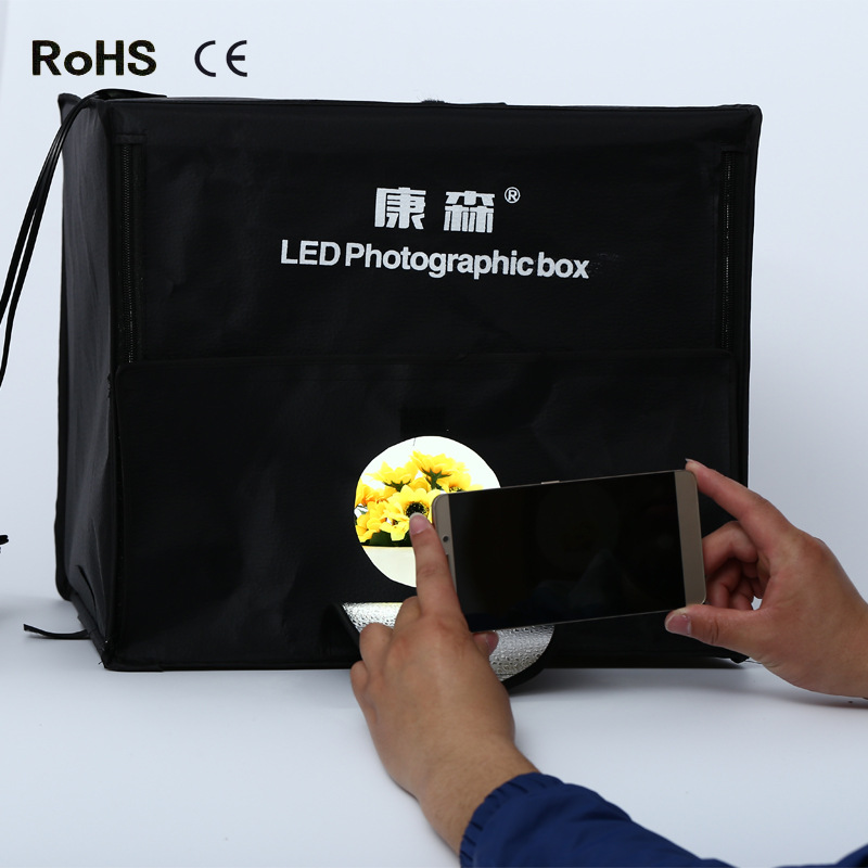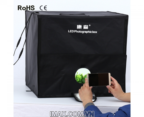 Nguồn sáng: hộp chụp bao gồm 2 đèn LED siêu sáng (5500K) với công suất 40W, sử dụng điện dân dụng 220V rất tiện lợi.