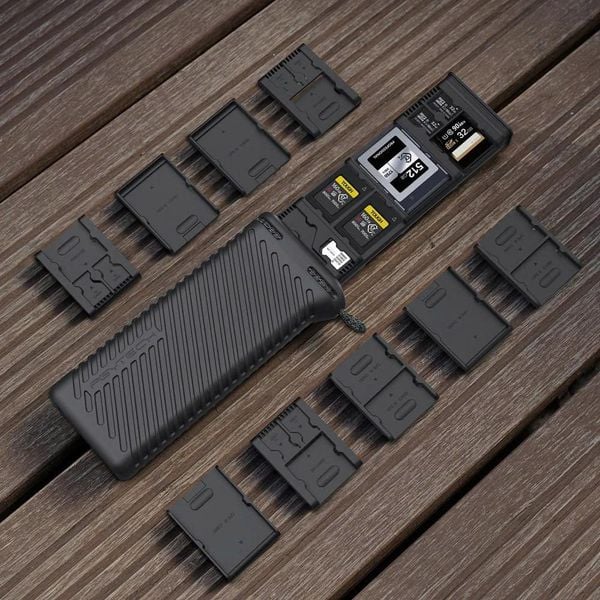 1. Dung lượng lưu trữ lớn với nhiều khe cắm thẻ, tương thích với thẻ Micro SD, SD, CFA, CFB/XQD và Nano SIM. Bao gồm que đẩy thẻ tiện lợi giúp tháo và thay thẻ dễ dàng.