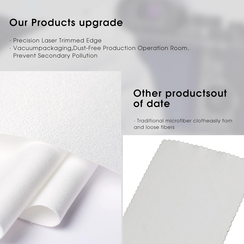 - Ứng dụng rộng rãi: Khăn lau ống kính sợi nhỏ phù hợp với nhiều nhu cầu làm sạch khác nhau: ống kính máy ảnh; màn hình điện thoại; máy tính xách tay; màn hình máy tính; bàn phím; kính và ống kính quang học khác.