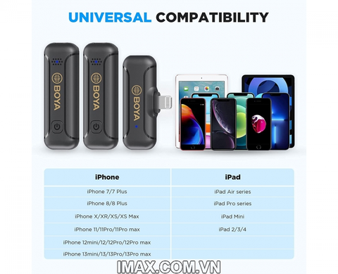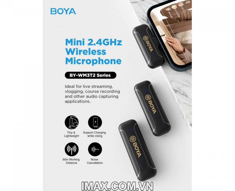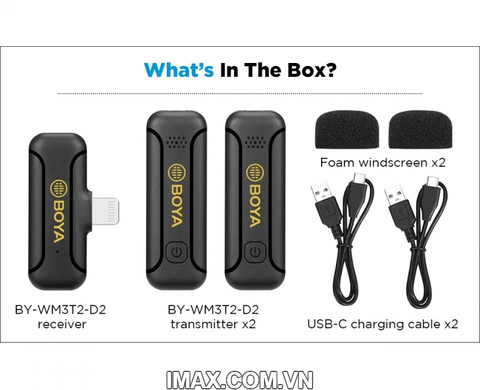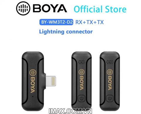 Mic thu âm BOYA BY-WM3T2-D2 cho điện thoại iPhone là hệ thống micro không dây nhỏ 2.4Ghz cung cấp âm thanh chất lượng cao để phát trực tiếp, làm vlog, ghi âm khóa học và các liên kết ứng dụng ghi âm khác.