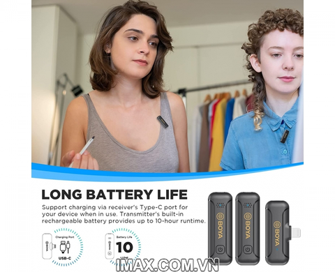 Bên cạnh đó pin sạc tích hợp của bộ phát cho phép thời gian hoạt động lên đến 10 giờ, giúp bạn ghi âm trọn vẹn cả ngày.BY-WM3T2-D2có phạm vi hoạt động hiệu quả khoảng 50m trong môi trường không chướng ngại vật. Bao gồm cả 2 máy phát, nó có thể ghi hai nguồn âm thanh cùng một lúc, được thietbiquayphim.com phân phối trên thị trường với giá tốt nhất.