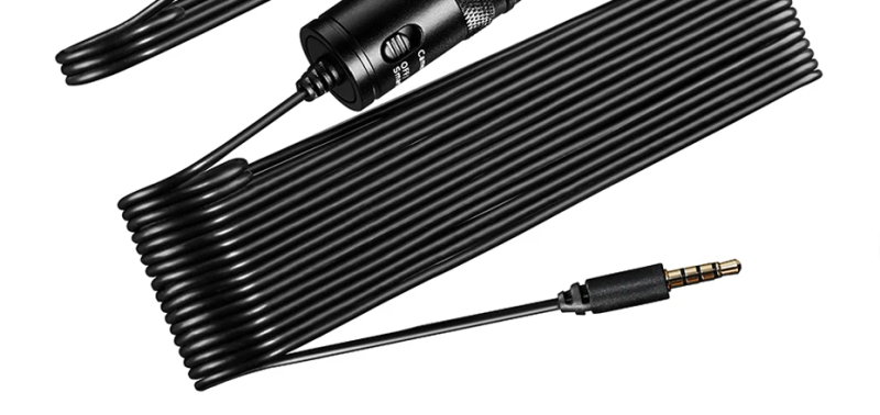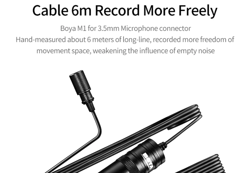 Dây dẫn của mic có độ dài lên tới 6m phù hợp cho các không gian khá rộng, để người dùng có thể đứng xa máy quay mà vẫn đảm bảo thu tiếng tốt.