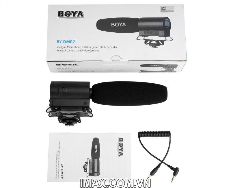- Đầu vào tai nghe 3,5mm BOYA BY-DMR7 là một microphone chất lượng phát sóng được thiết kế đặc biệt cho máy ảnh và máy quay DSLR.