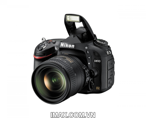 Cảm biến:35mm full-frame CMOS (Nikon FX). Độ phân giải thực 24,3MP. D610 cũng có thể hoạt động ở chế độ crop APS-C với độ phân giải 10,5MP khi dùng ống DX. Độ nhạy từ ISO 100 đến ISO 6400, có thể mở rộng tới 50 – 25600.
