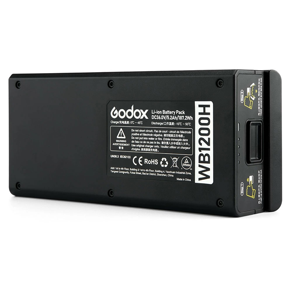 Godox WB1200H là Pin 36V, 5200 mAh cho AD1200 Pro từ Godox được thiết kế cho hệ thống đèn flash AD1200 Pro.