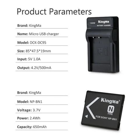 - Tương thích với các mẫu bộ sạc cho pin NP-BN1 - Đầu vào: 5V 2A; Đầu ra: 4,35V 600mA - Bộ sạc LCD thông minh hiển thị trạng thái sạc và dung lượng pin. - Dành cho máy ảnh Sony TX300 TX55 WX70 W690