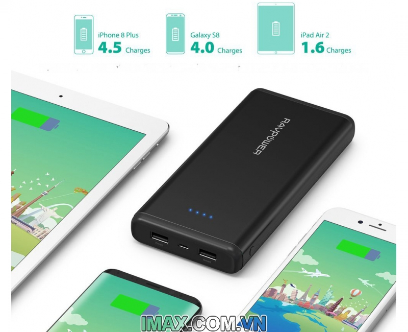 - Nhiều năng lượng hơn với RAVPower RP-PB006- 20000mAh:Với mức dung lượng 20000mAhcho phép bạn mang theo PB006 trong hành lý xách tay của bạn trên chuyến bay nội địa hoặc quốc tế, sạc dự phòng cầm tay nàycó thể cung cấp 6,1 lần sạc đầy cho iPhone 7, 4 lần sạc đầycho Samsung Galaxy S8 và 1,6 lần sạc đầycho iPad Air.