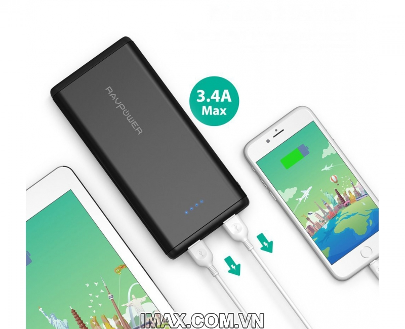 Đặc điểm nổi bật của Pin sạc dự phòng RAVPower RP-PB006, 20000mAh, iSmart 2.0, 3.4A Max