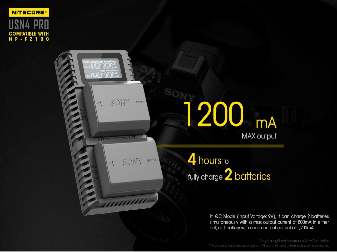 Đế sạc pin Nitecore USN4 PRO - Giải pháp sạc nhanh và hiệu quả cho pin NP-FZ100 của Sony. Với kết nối USB-Type C tiện lợi, kích thước nhỏ gọn (125 x 70 x 29 mm), và trọng lượng nhẹ chỉ 95g, đây là phụ kiện lý tưởng để duy trì năng lượng cho máy ảnh của bạn mọi nơi mọi lúc.