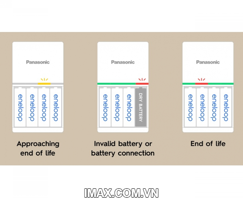 - Thời gian sạc pin eneloop 4AA đã xả hết trong khoảng 3 giờ; eneloop 2AA hoặc 2AAA trong tối đa 1,5 giờ.