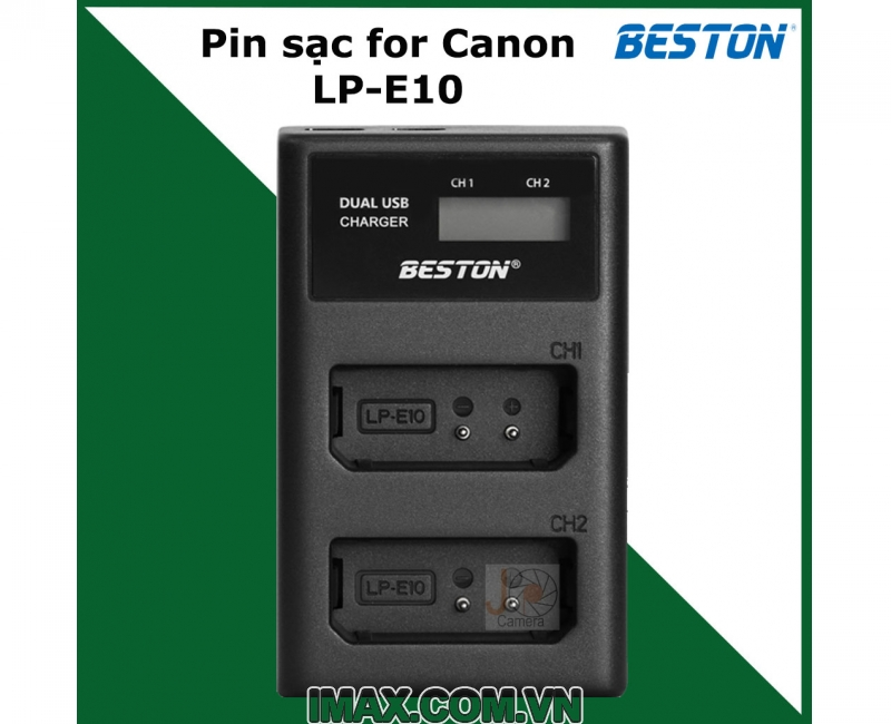 - Dành cho pin LP-E10 có màn hình LED hiển thị mức pin đang sạc.